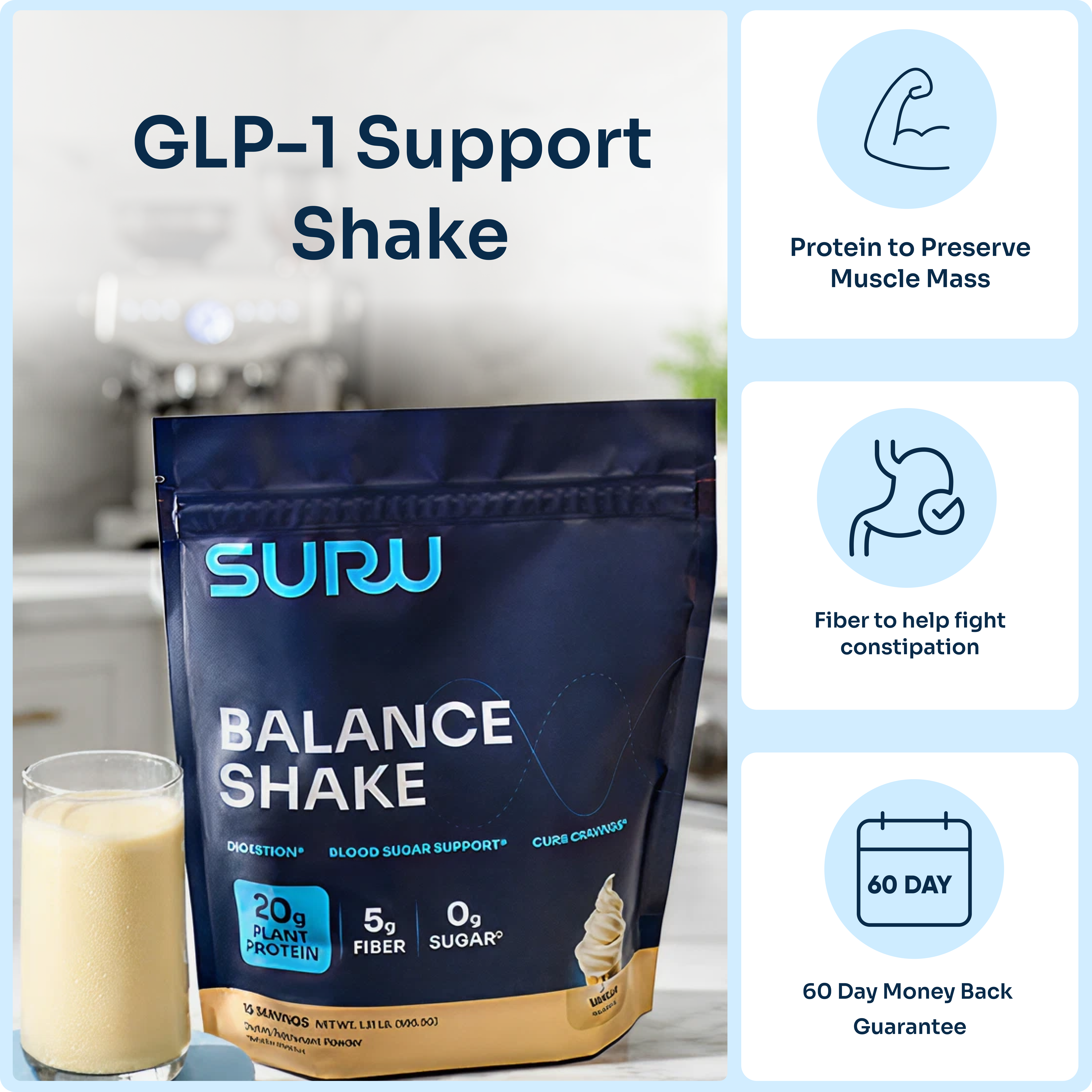 GLP-1s can make meals feel like a chore. Suru makes it simple to get the protein, fiber, and nutrients your body needs—even when you don’t feel like eating. One shake, and you’re covered.