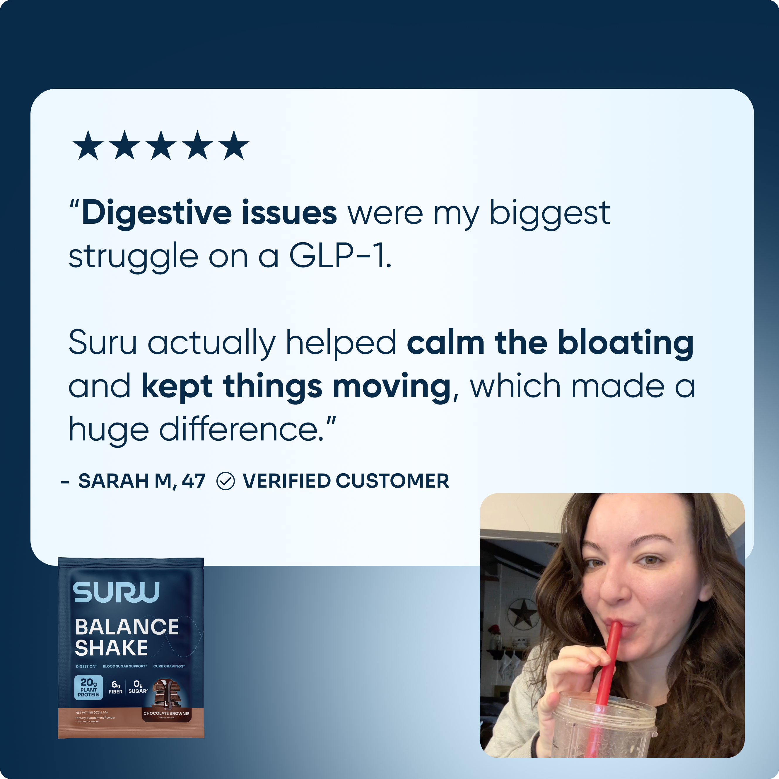 GLP-1s often slow things down. Suru’s fiber and hydration-friendly formula helps keep things moving comfortably.