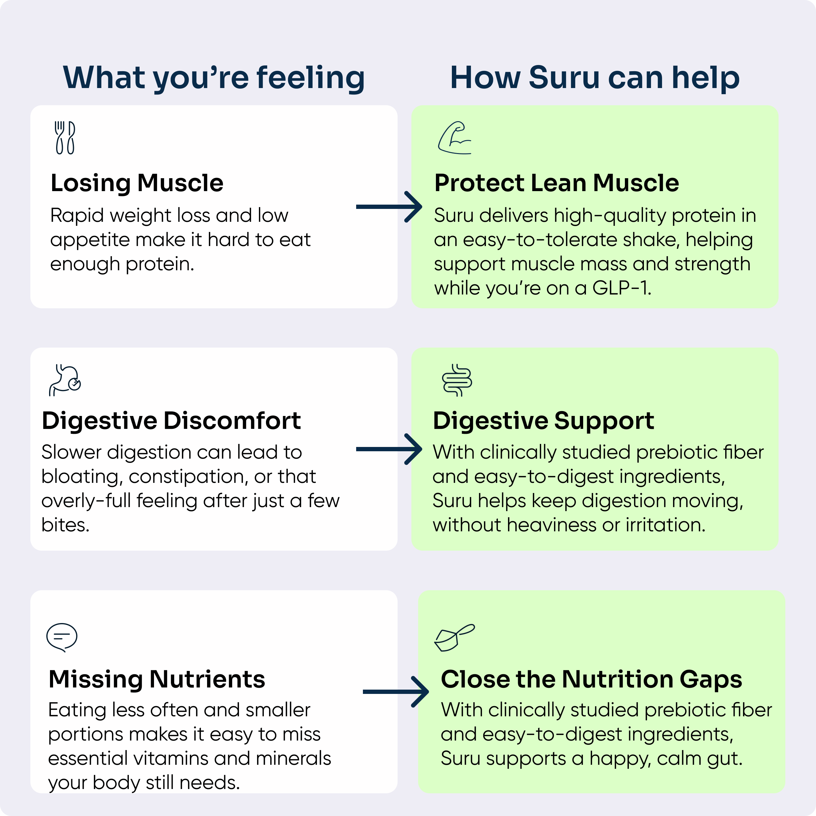 See why people choose Suru to help support their GLP-1 medication every day.