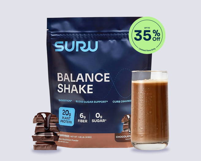 Suru is a Blood Sugar Support shake designed to help manage blood sugar levels, support gut health, and keep you feeling full longer. Made with high-quality plant-based ingredients, it is free from added sugars, soy, dairy, and artificial colors.